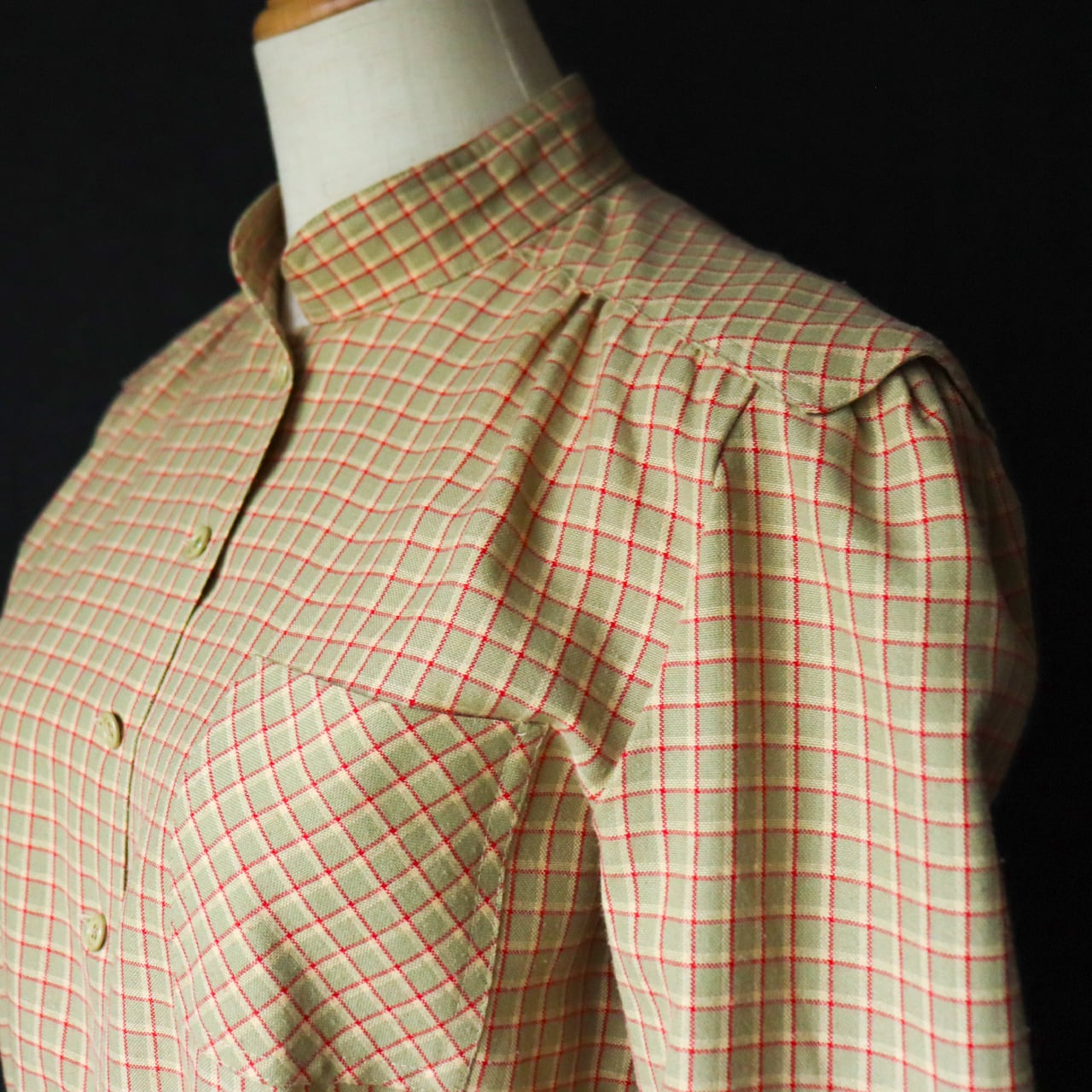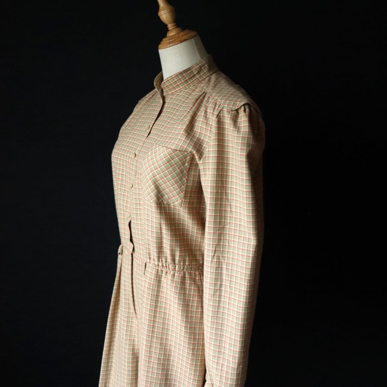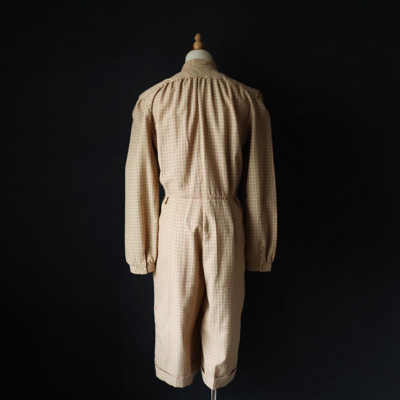 euro vintage maocollar jumpsuit / チェック柄ジャンプスーツ